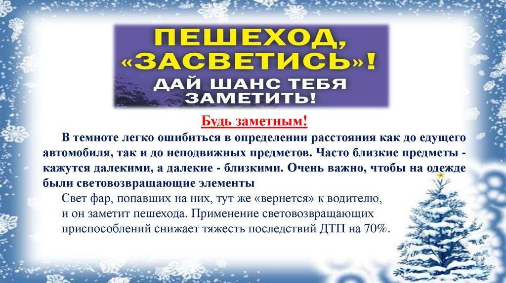 Будь заметным!В темноте легко ошибиться в определении расстояния как до едущего