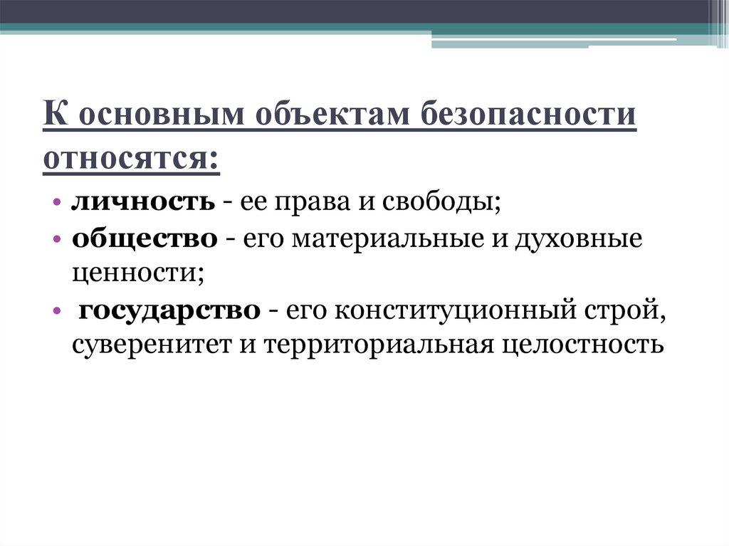 К основным объектам безопасностиотносятся: