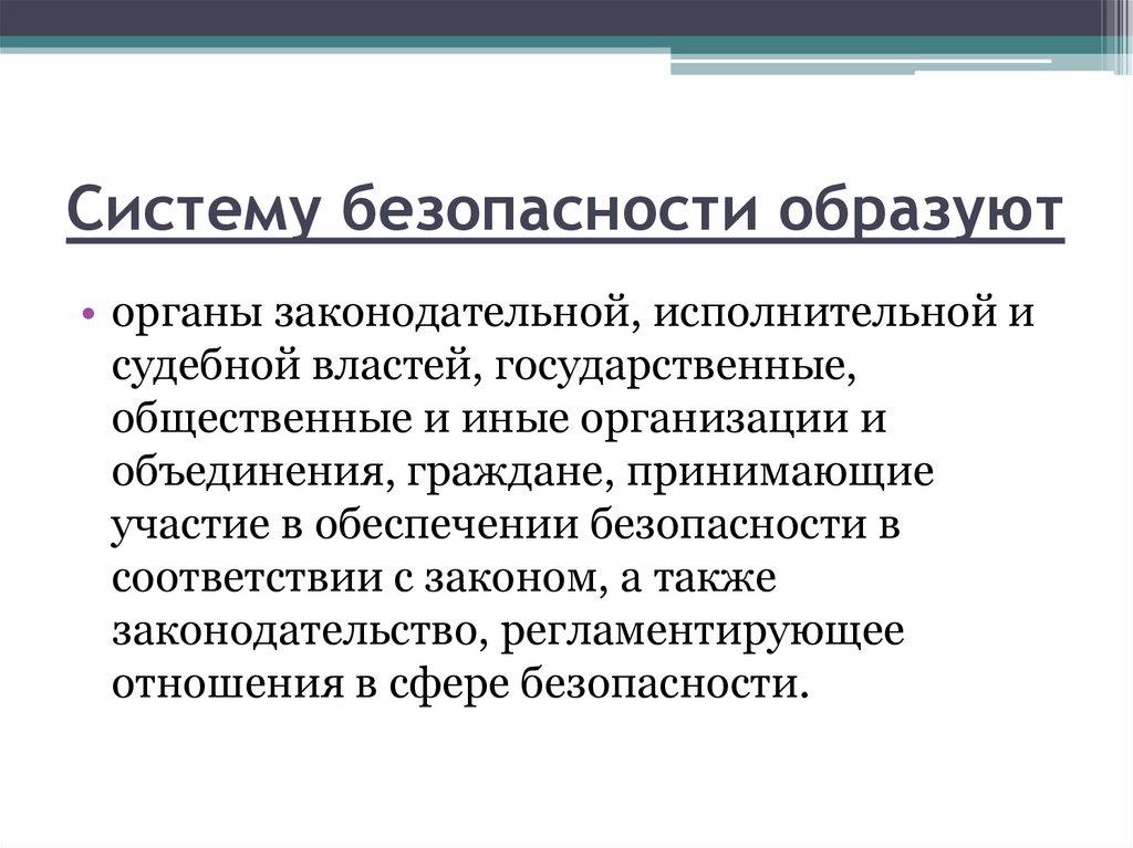 Систему безопасности образуют• органы законодательной, исполнительной и