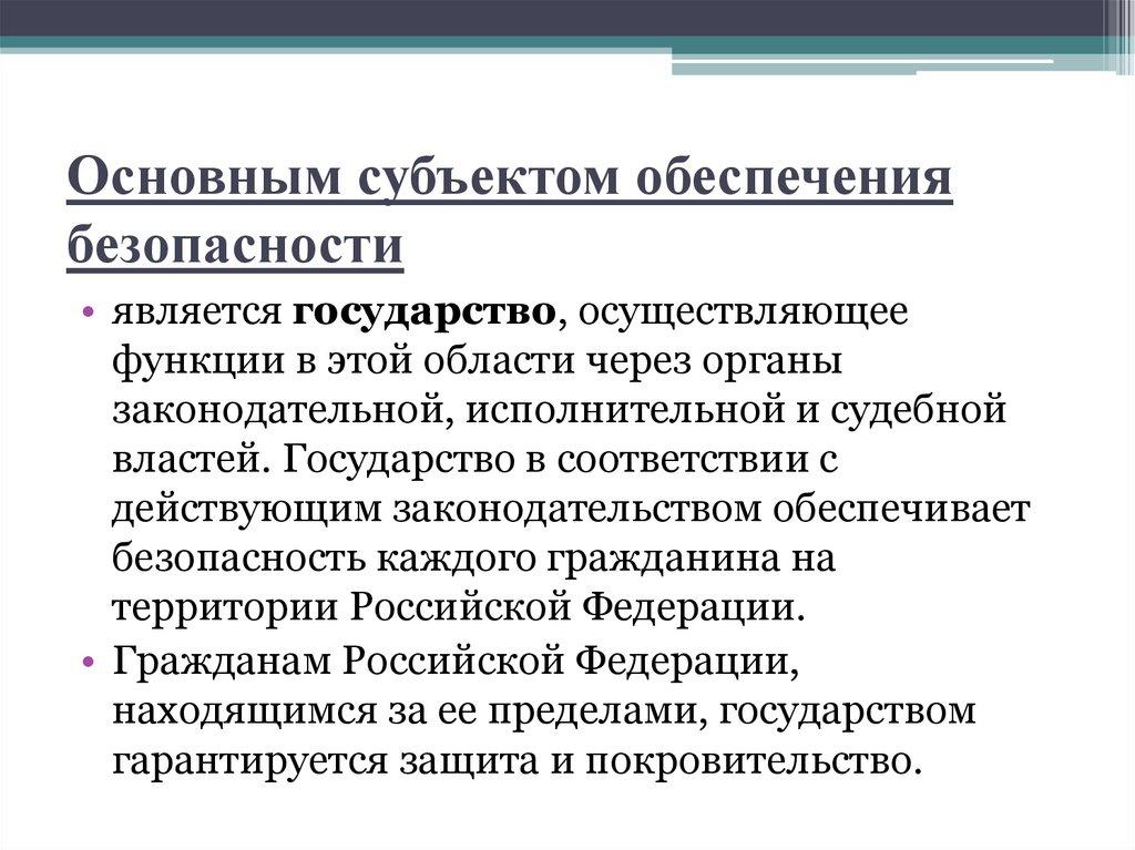 Основным субъектом обеспечениябезопасности
