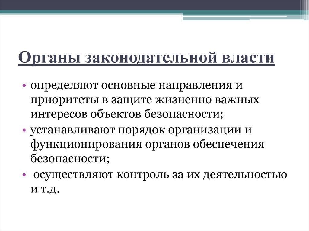 Органы законодательной власти• определяют основные направления и