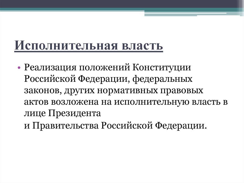 Исполнительная власть• Реализация положений Конституции