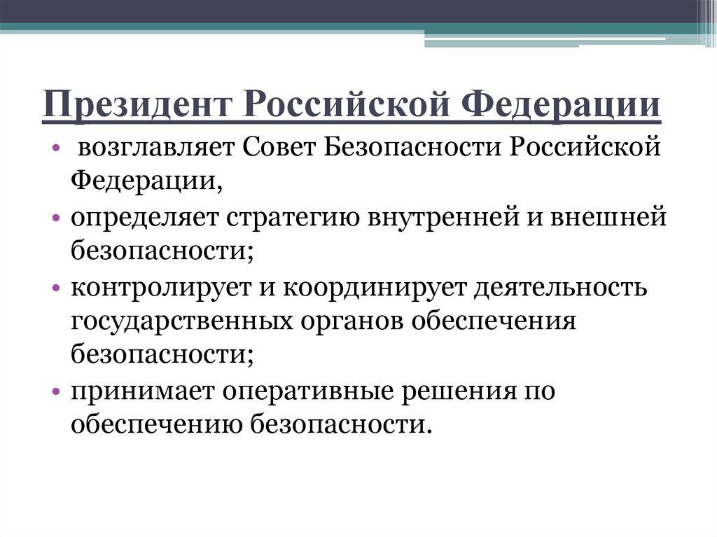 Президент Российской Федерации• возглавляет Совет Безопасности Российской