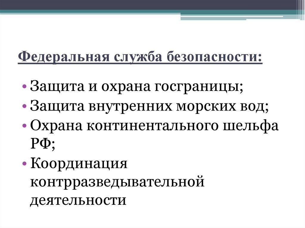 Федеральная служба безопасности:• Защита и охрана госграницы;