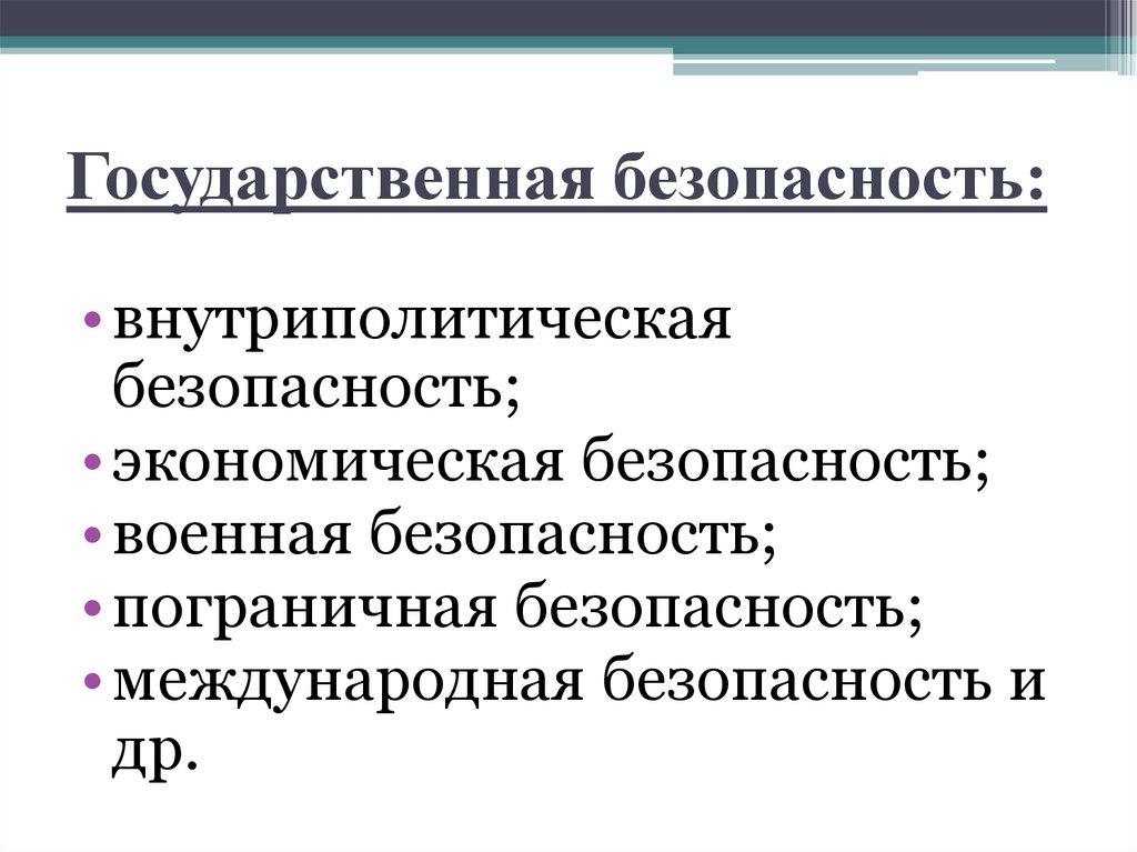 Государственная безопасность:• внутриполитическая