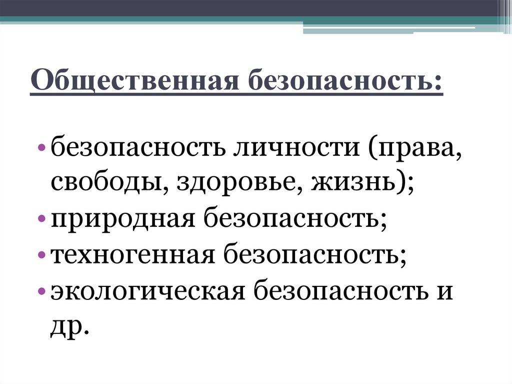 Общественная безопасность:• безопасность личности (права,