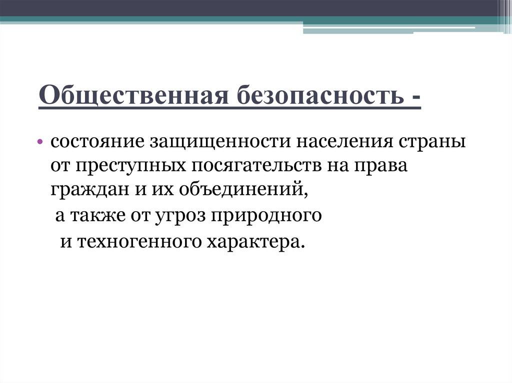 Общественная безопасность • состояние защищенности населения страныот преступных посягательств на права