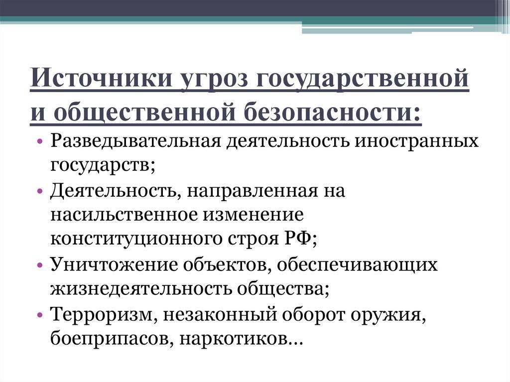 Источники угроз государственнойи общественной безопасности: