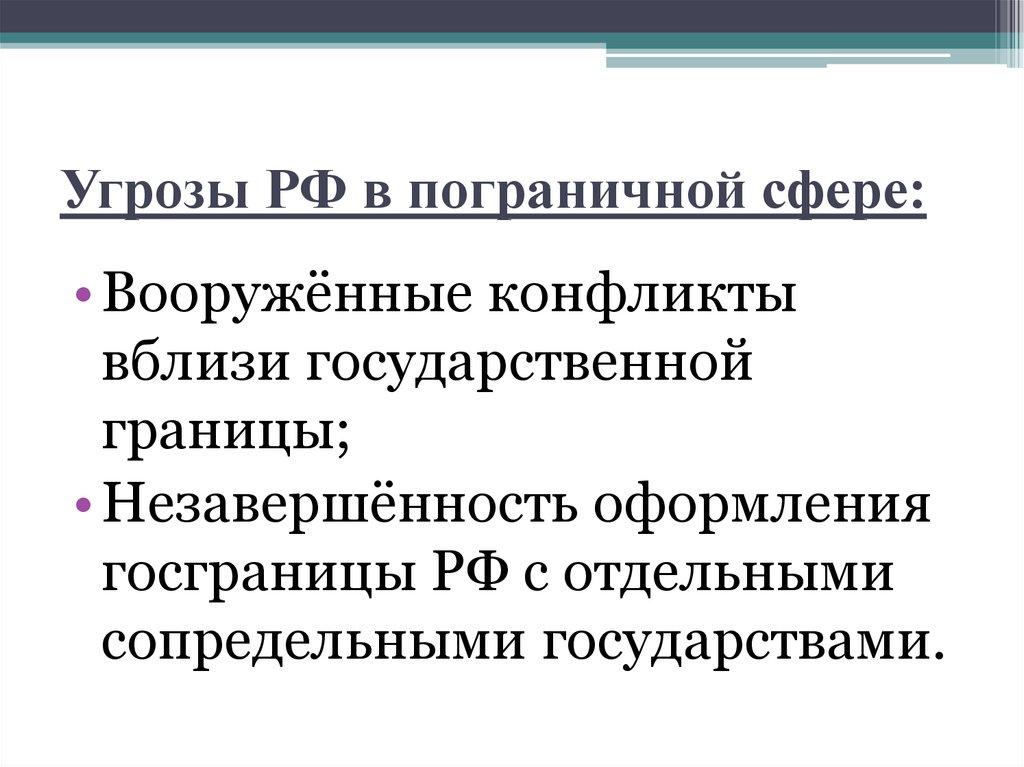 Угрозы РФ в пограничной сфере:• Вооружённые конфликты