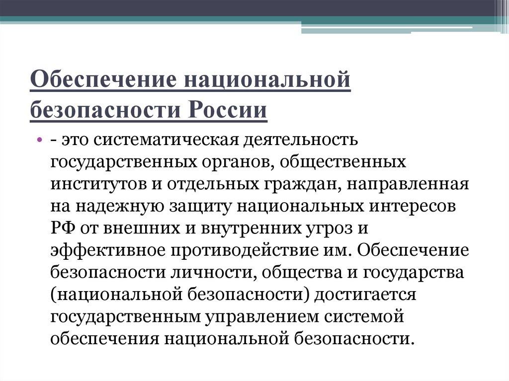 Обеспечение национальнойбезопасности России