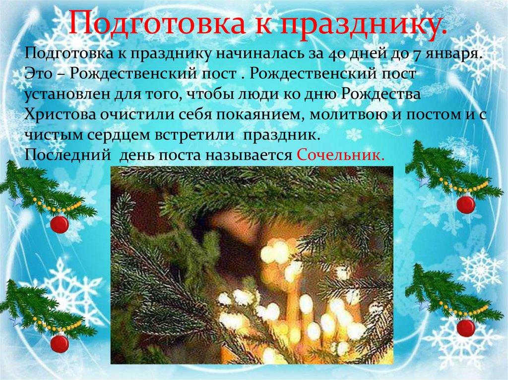 Подготовка к празднику.Подготовка к празднику начиналась за 40 дней до 7 января.