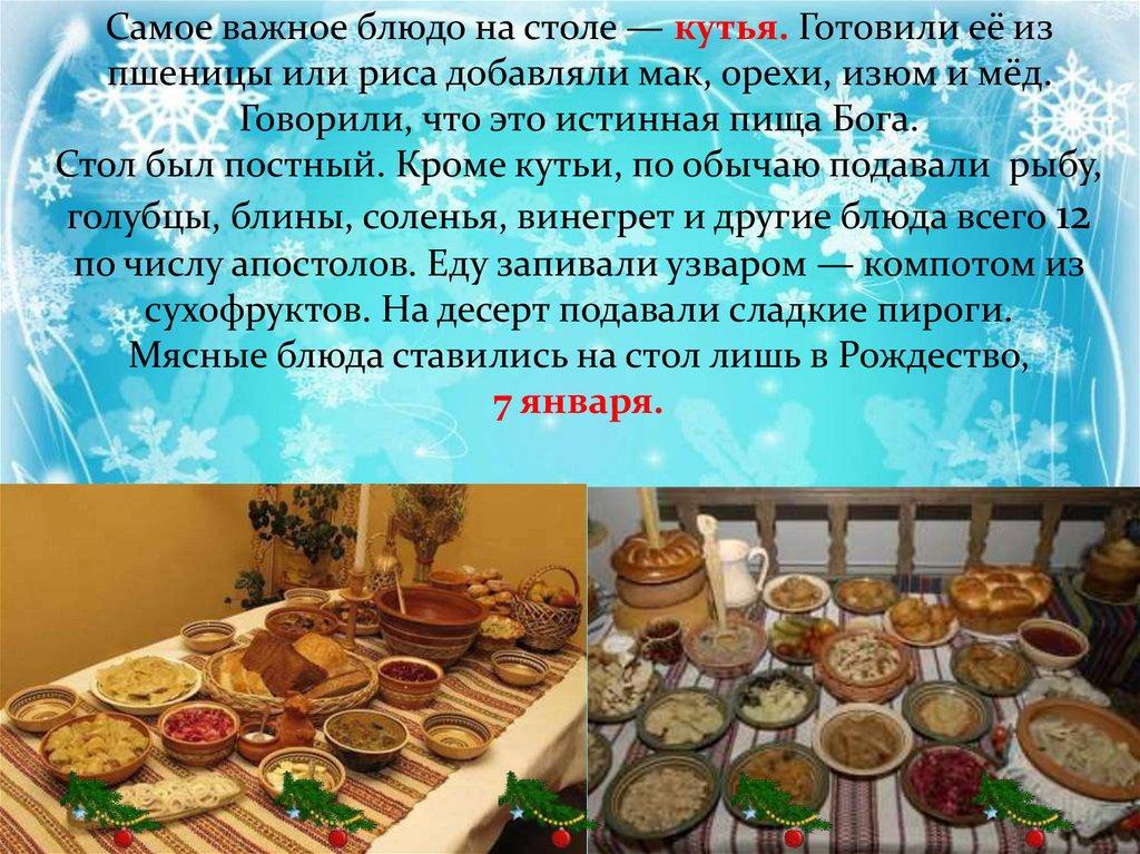 Стол был постный. Кроме кутьи, по обычаю подавали рыбу,