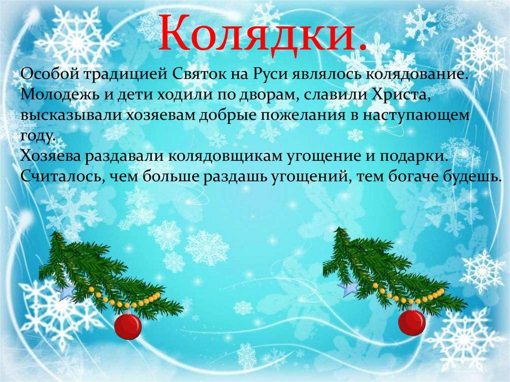 Колядки.Особой традицией Святок на Руси являлось колядование.