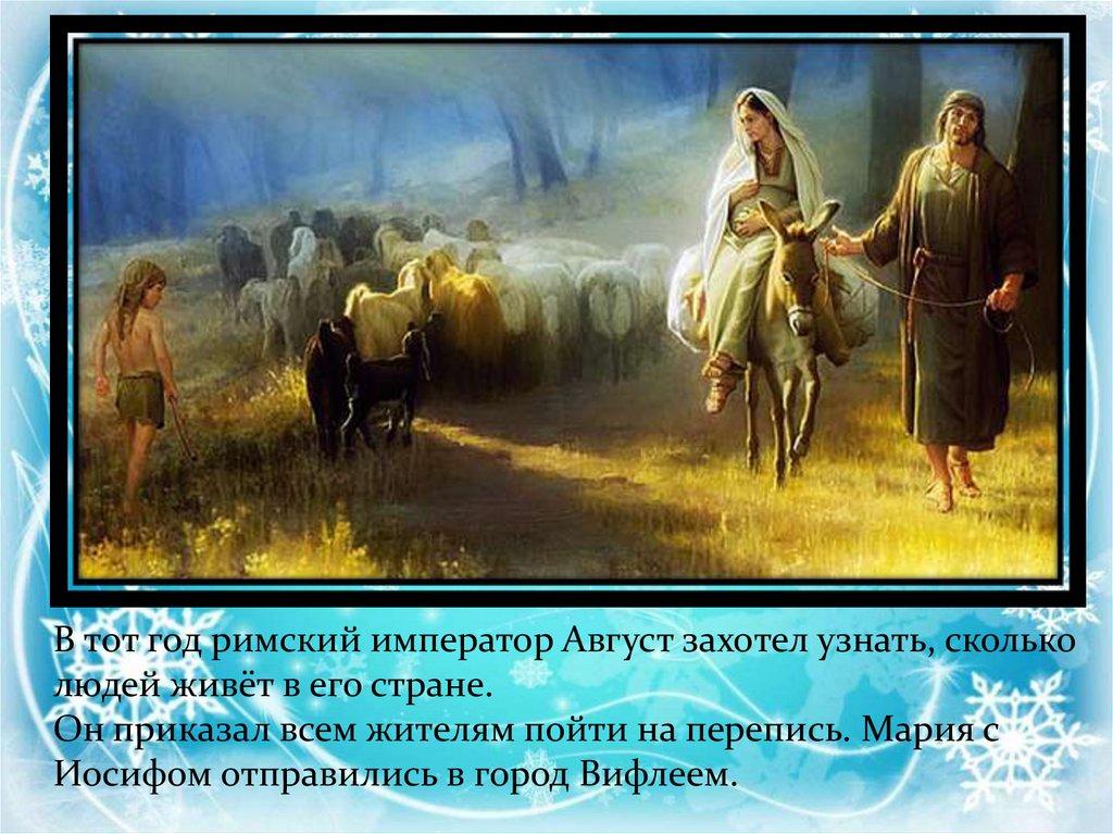 В тот год римский император Август захотел узнать, скольколюдей живёт в его стране.