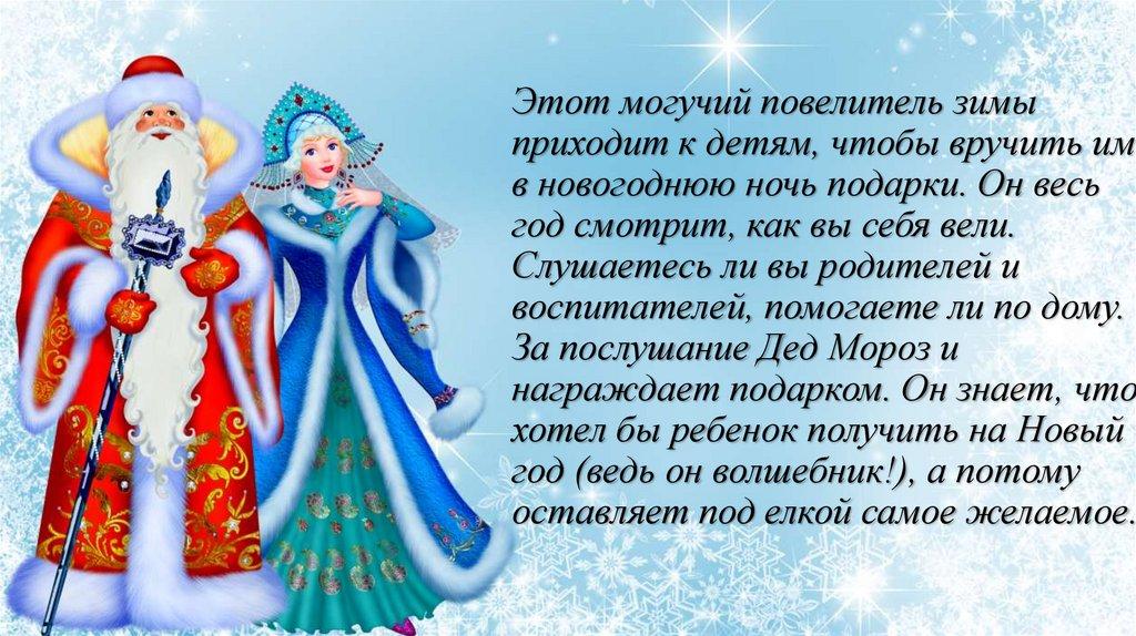 Этот могучий повелитель зимыприходит к детям, чтобы вручить им