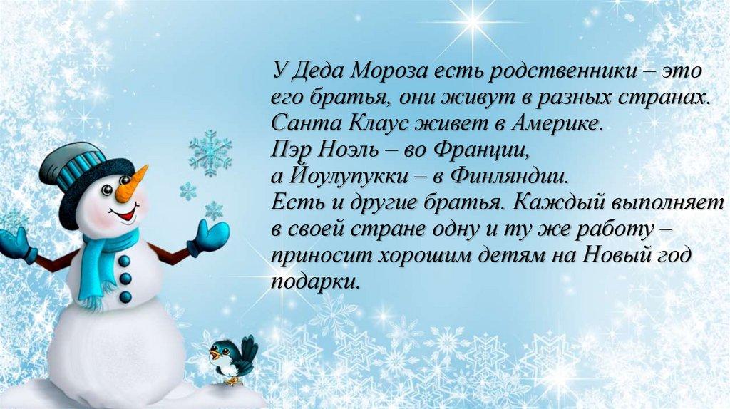 У Деда Мороза есть родственники – этоего братья, они живут в разных странах.