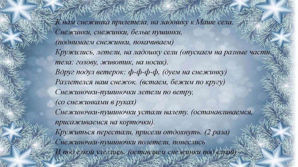 К нам снежинка прилетела, на ладошку к Маше села.Снежинки, снежинки, белые пушинки,