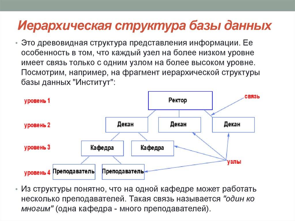 Иерархическая структура базы данных• Это древовидная структура представления информации. Ее