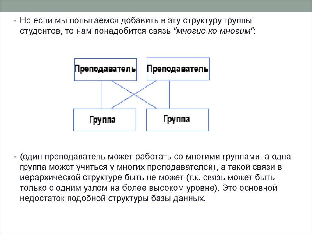• Но если мы попытаемся добавить в эту структуру группыстудентов, то нам понадобится связь "многие ко многим":