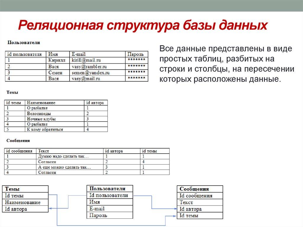 Структура базы данных• Создавая базу данных, мы стремимся упорядочить