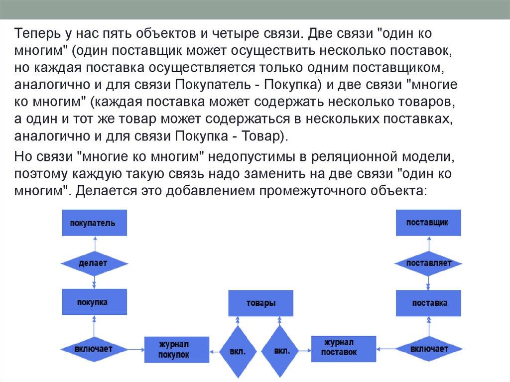 Но связи "многие ко многим" недопустимы в реляционной модели,