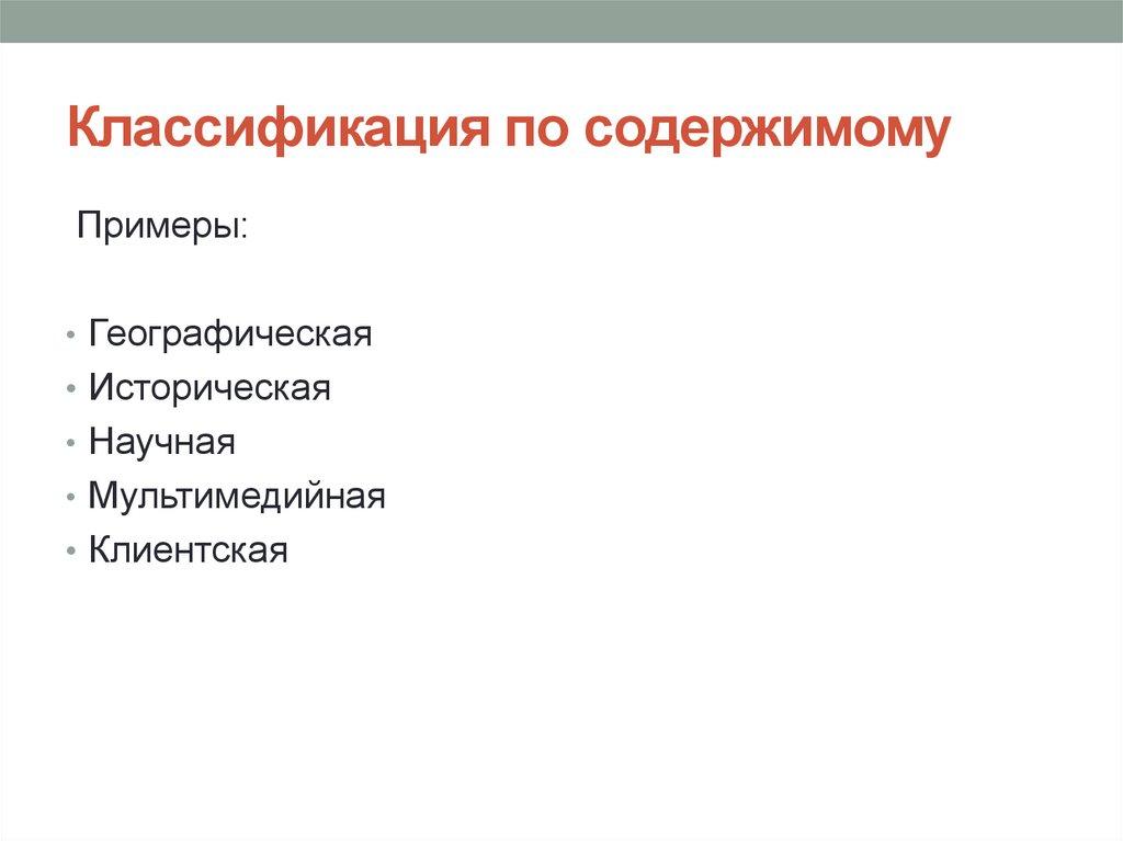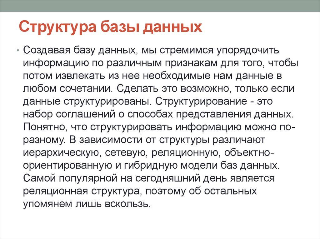 Понятно, что структурировать информацию можно поразному. В зависимости от структуры различают