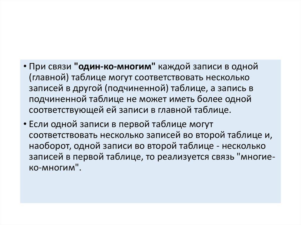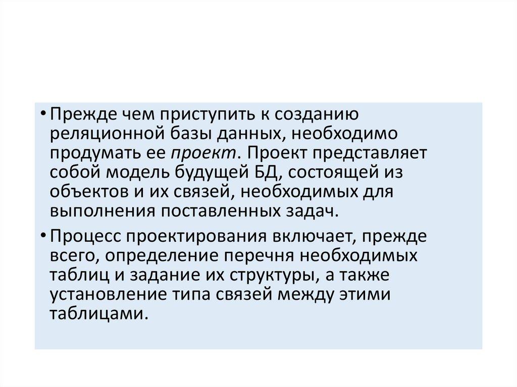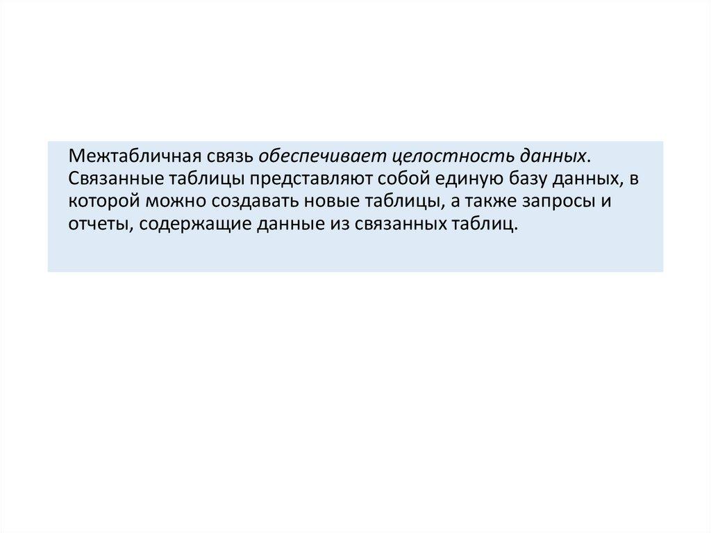 После создания различных таблиц, содержащих данные,относящиеся к различным аспектам базы данных, необходимо