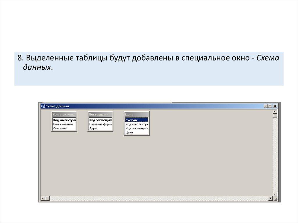 8. Выделенные таблицы будут добавлены в специальное окно - Схемаданных.
