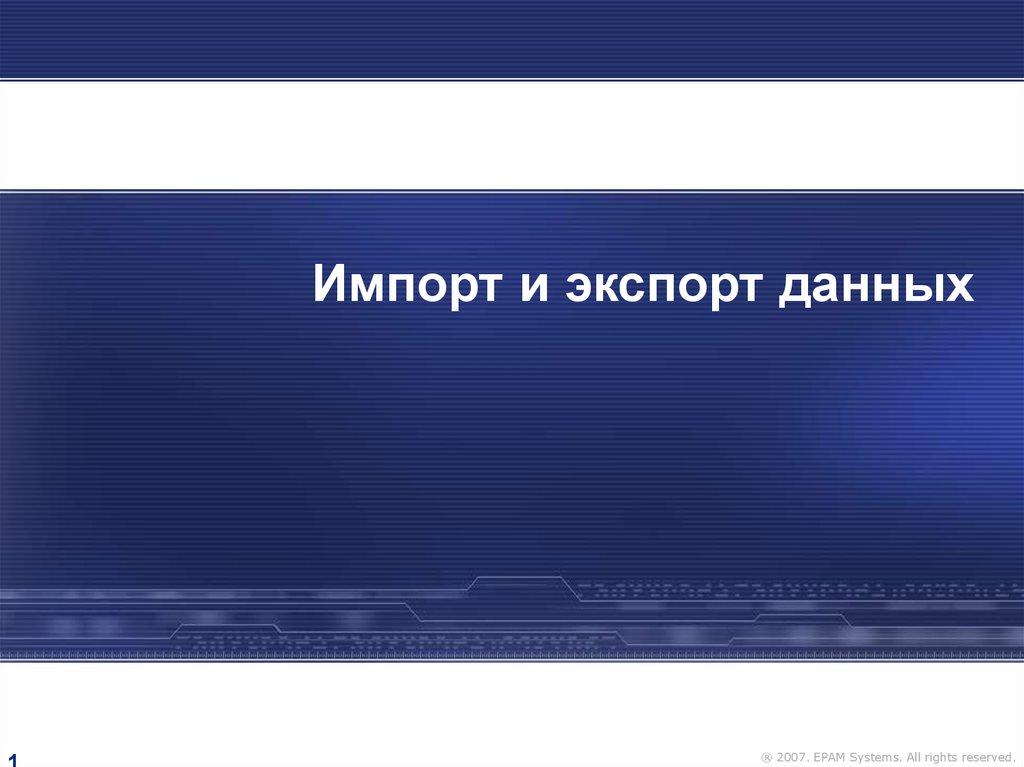 Импорт и экспорт данныхEPAM POWER POINT TITLE