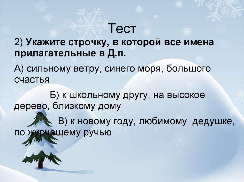 Тест4) В Д.п. употреблено имя прилагательное: