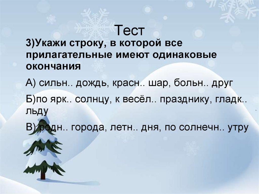 Тест3)Укажи строку, в которой все