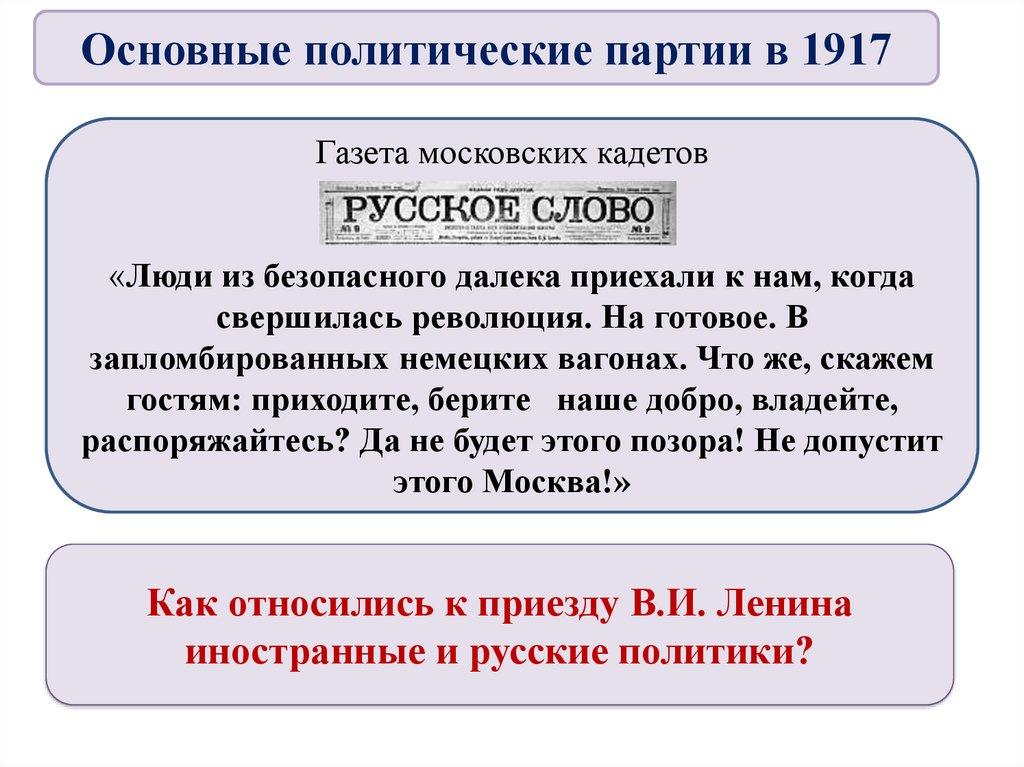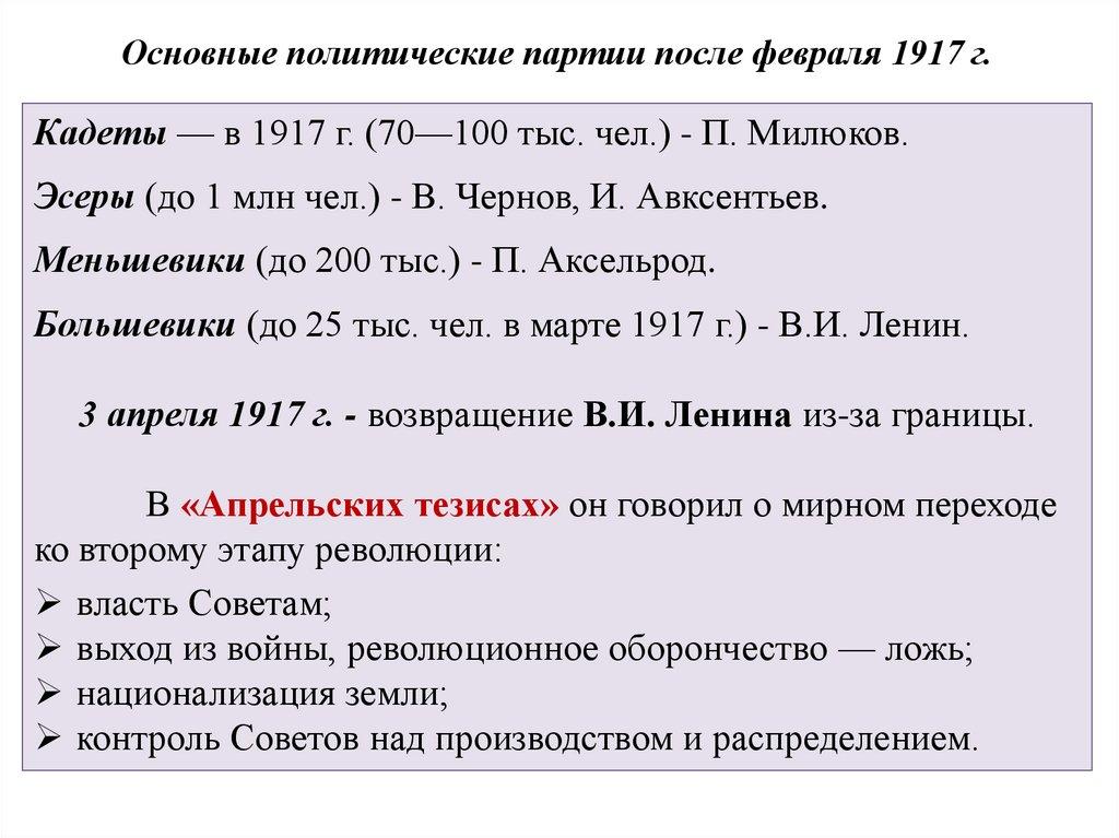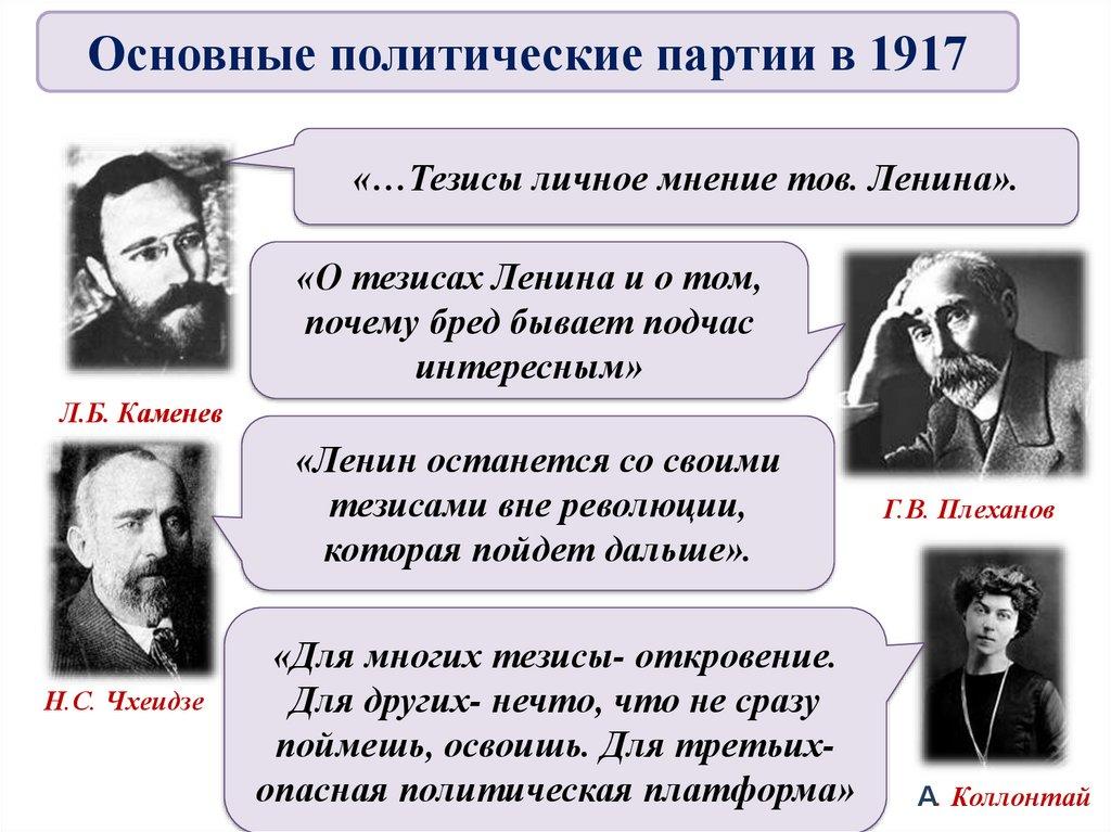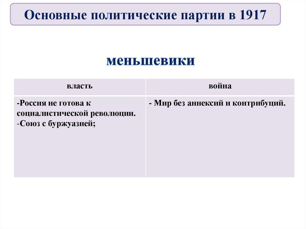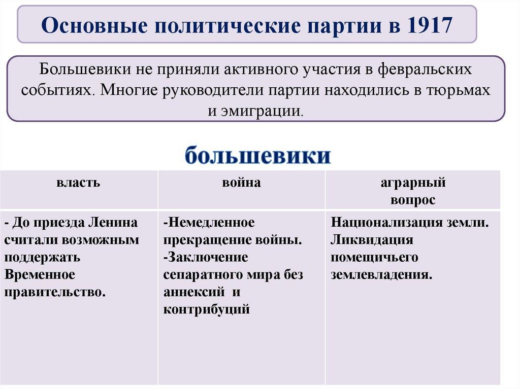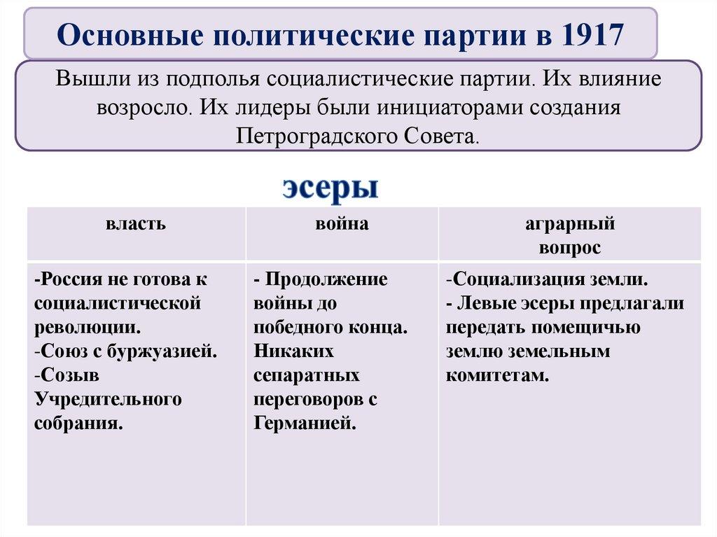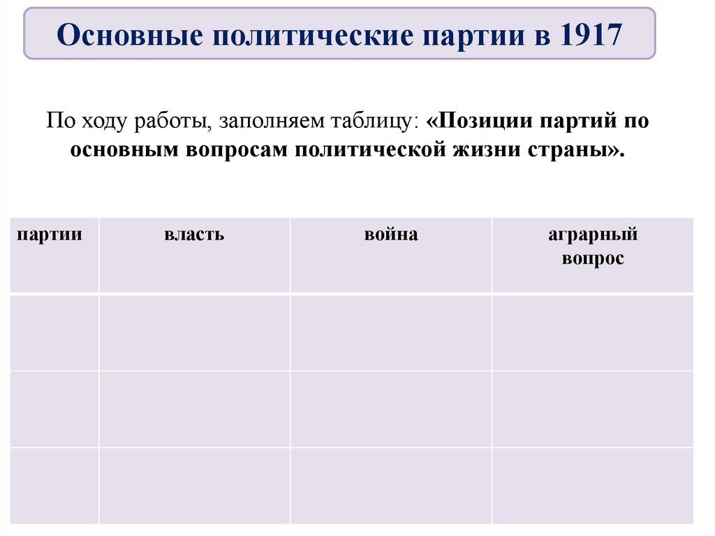 4. Основные политические партии в 1917