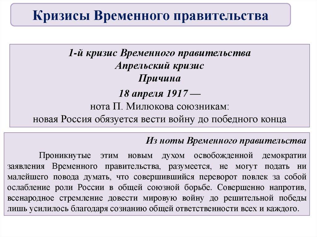 5. Кризисы Временного правительства.