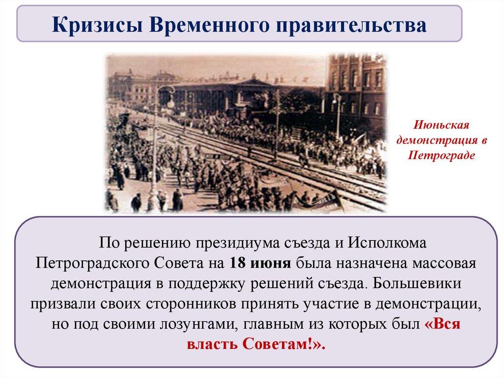 Петрограде. Лозунги — «Вся власть Советам», «Долой войну»,