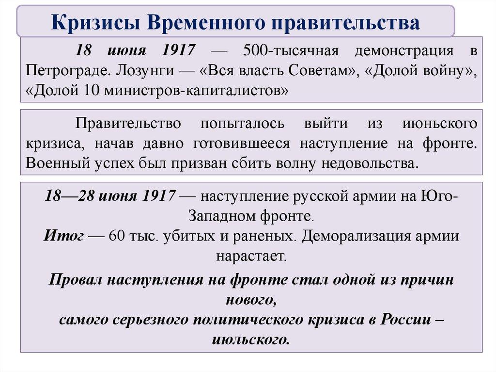Кризисы Временного правительства18 июня 1917 — 500-тысячная демонстрация в