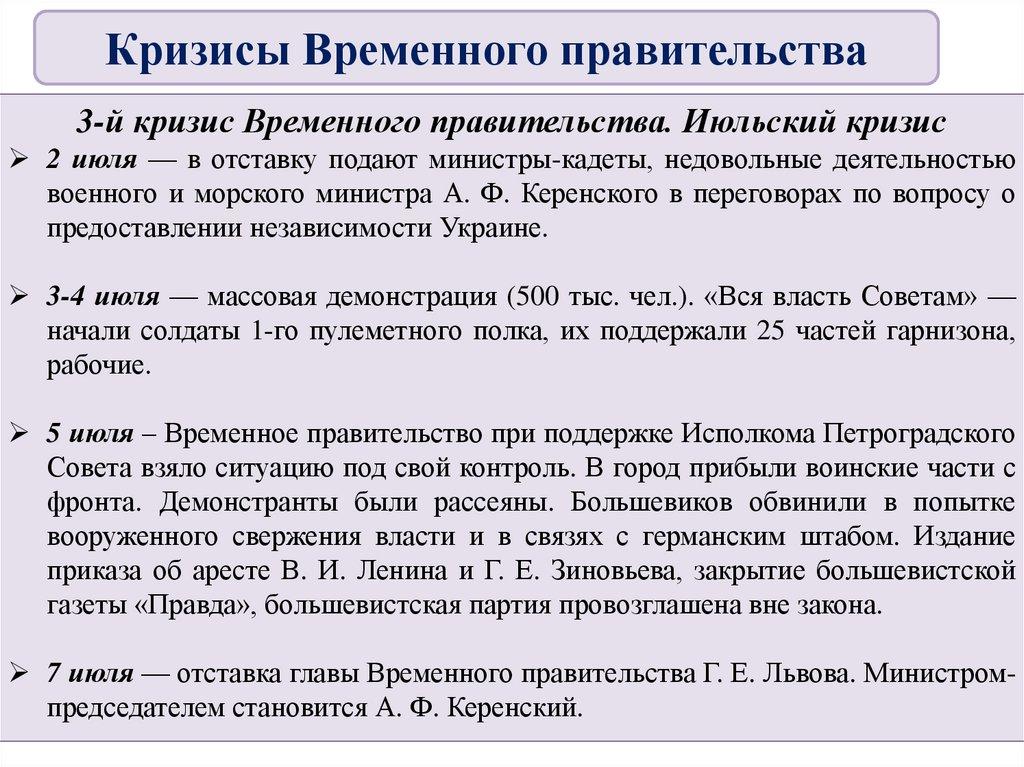 Кризисы Временного правительства3-й кризис Временного правительства. Июльский кризис
