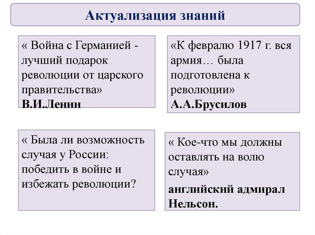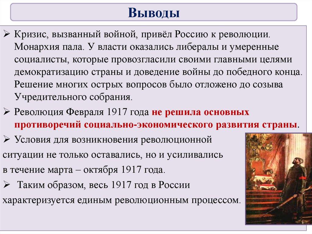 ВыводыКризис, вызванный войной, привёл Россию к революции.