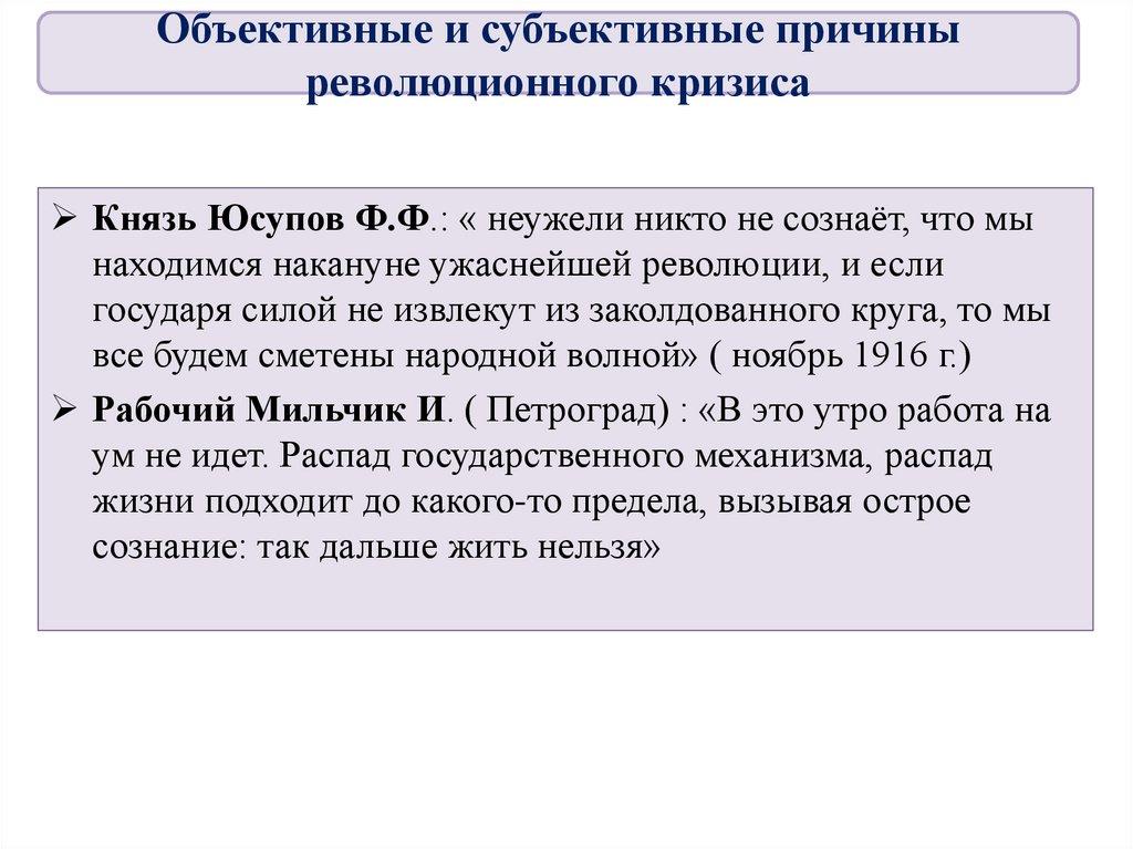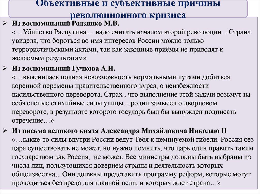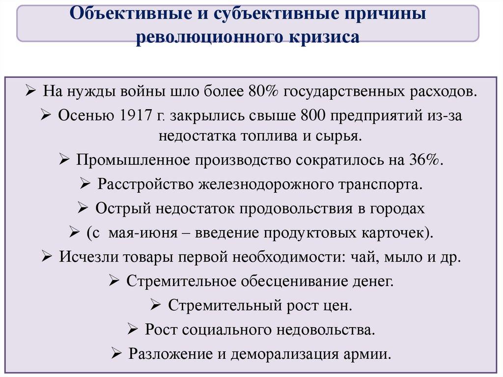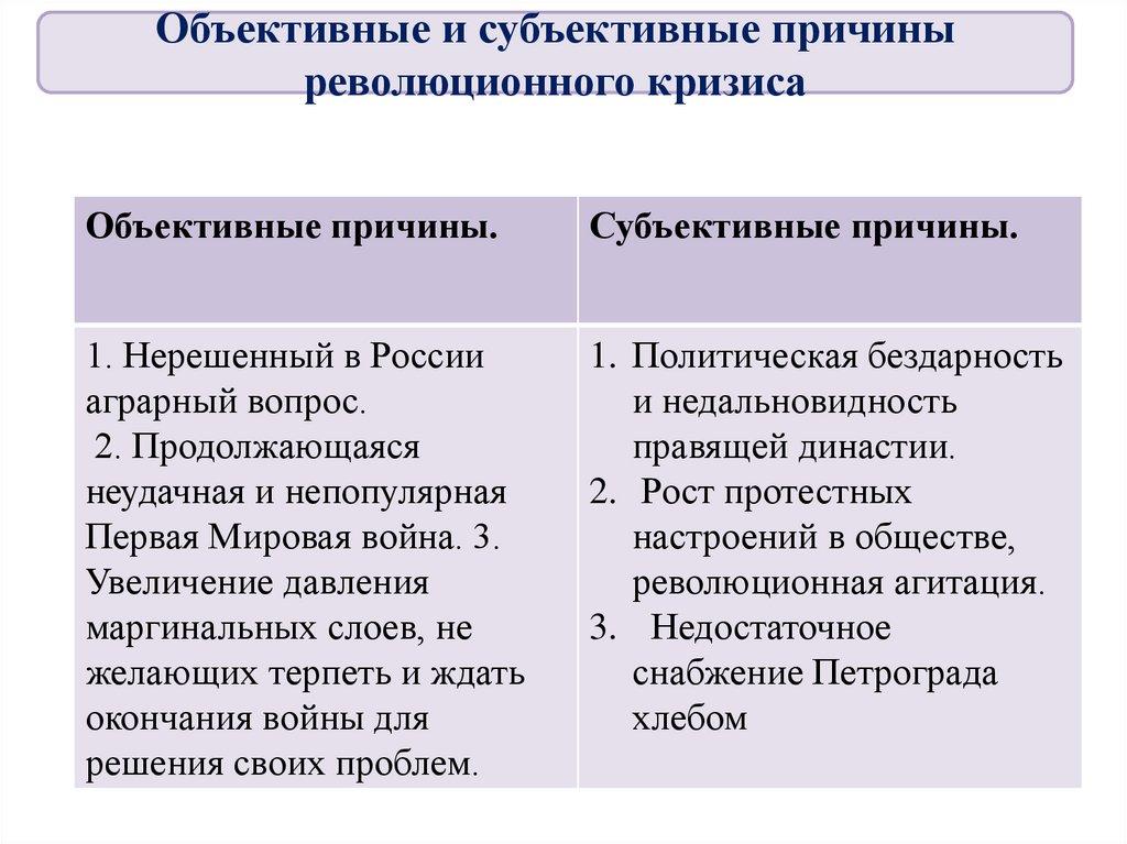 Объективные и субъективные причиныреволюционного кризиса
