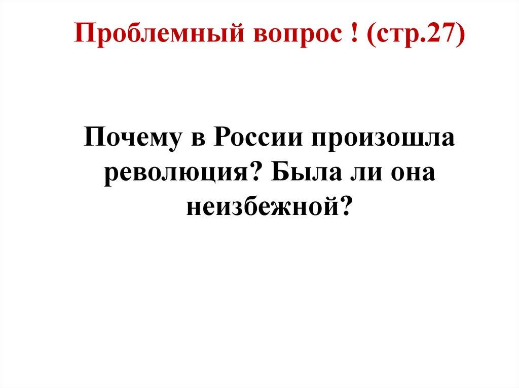 Проблемный вопрос ! (стр.27)Почему в России произошла