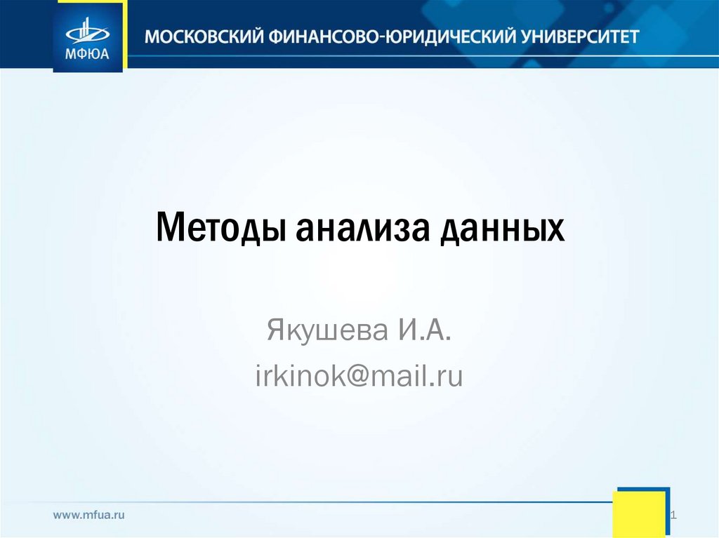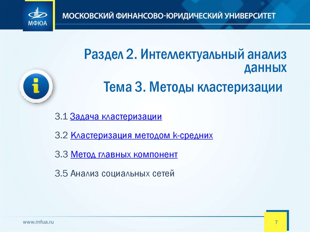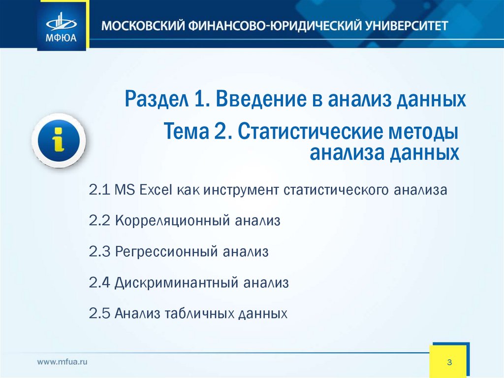 Раздел 1. Введение в анализ данныхТема 2. Статистические методы