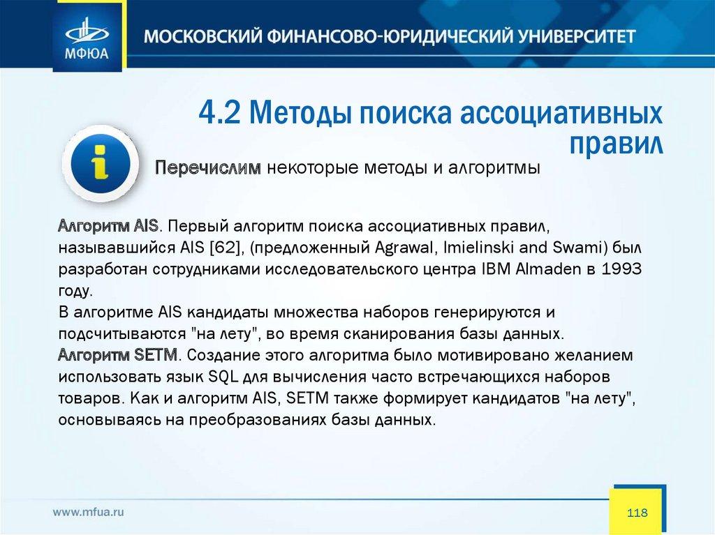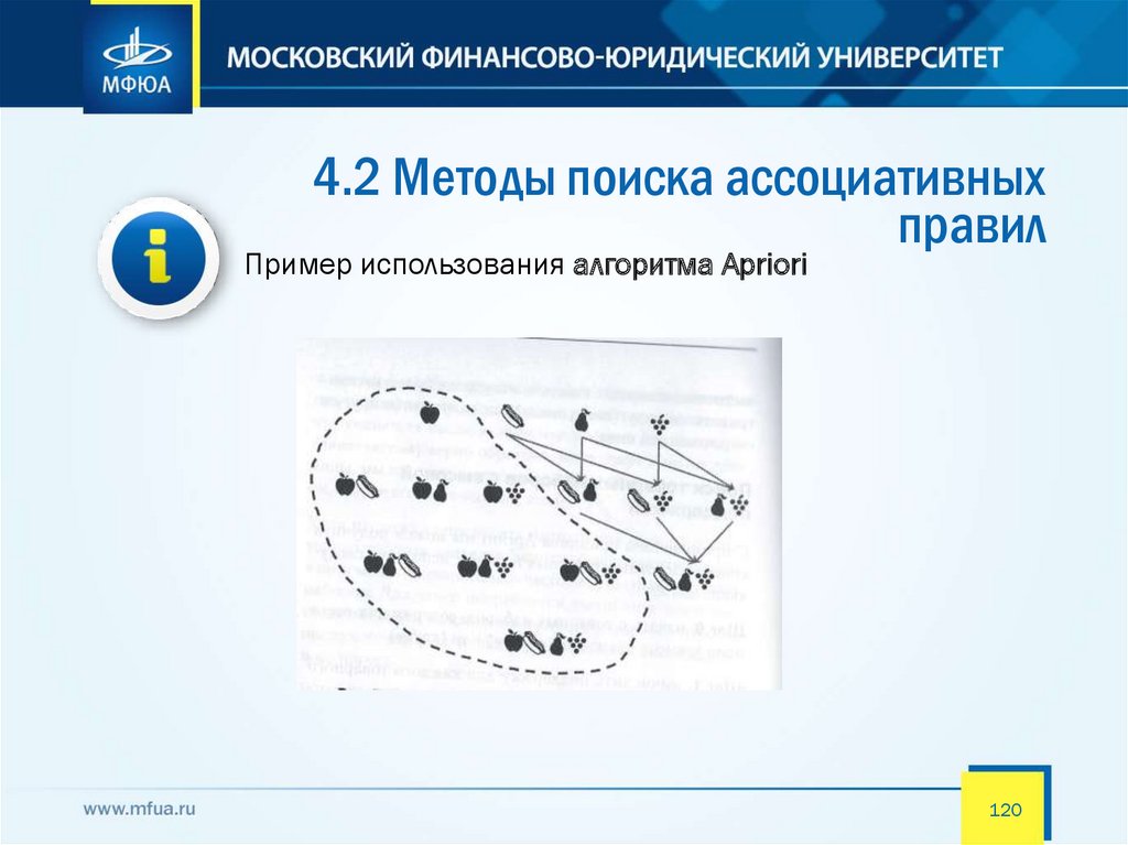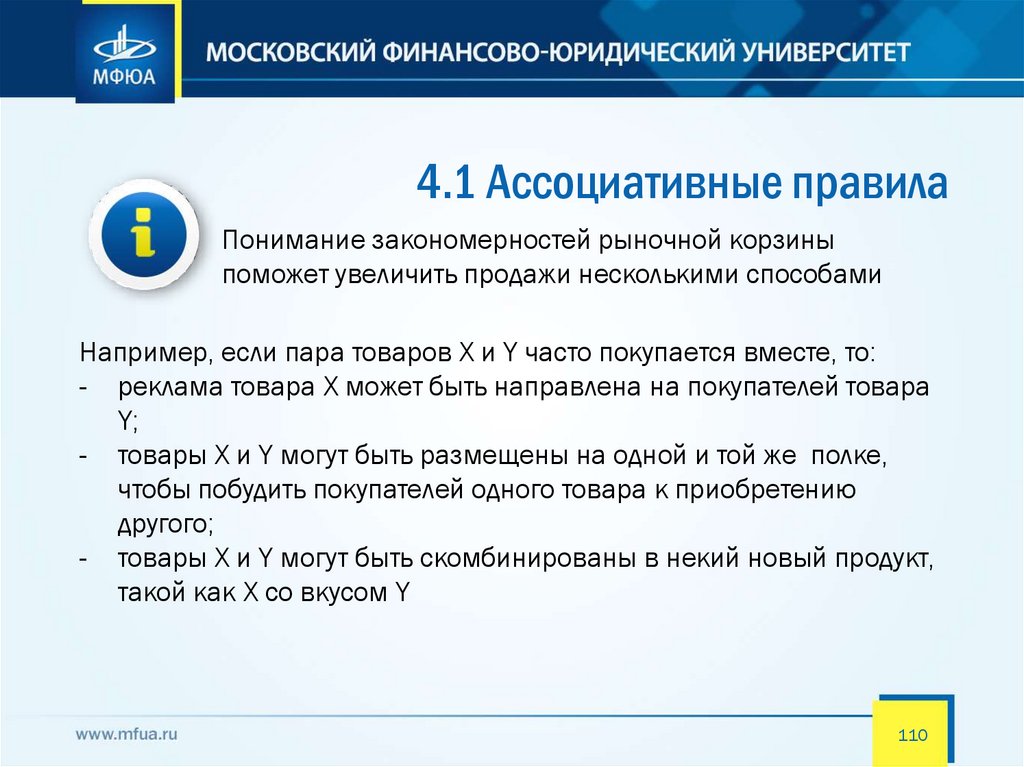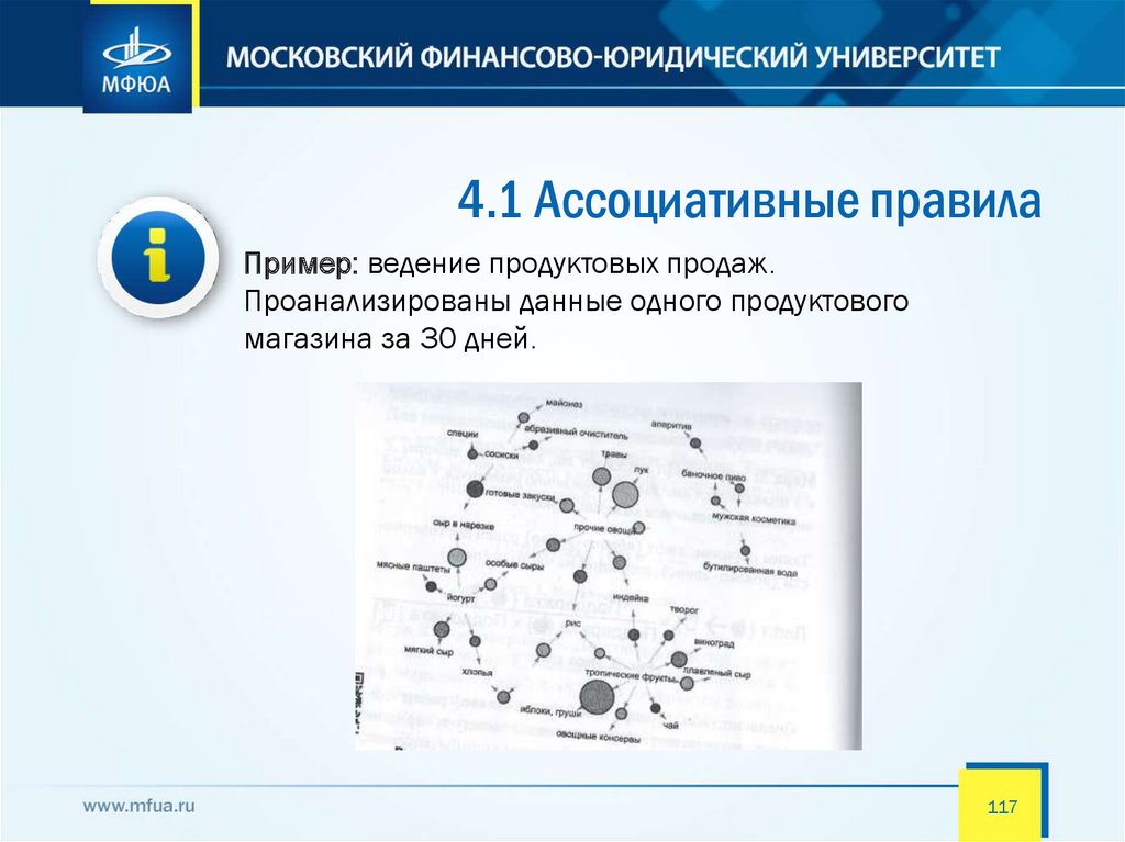 ► методы класса Data Mining: обучение ассоциативным правилам (англ.