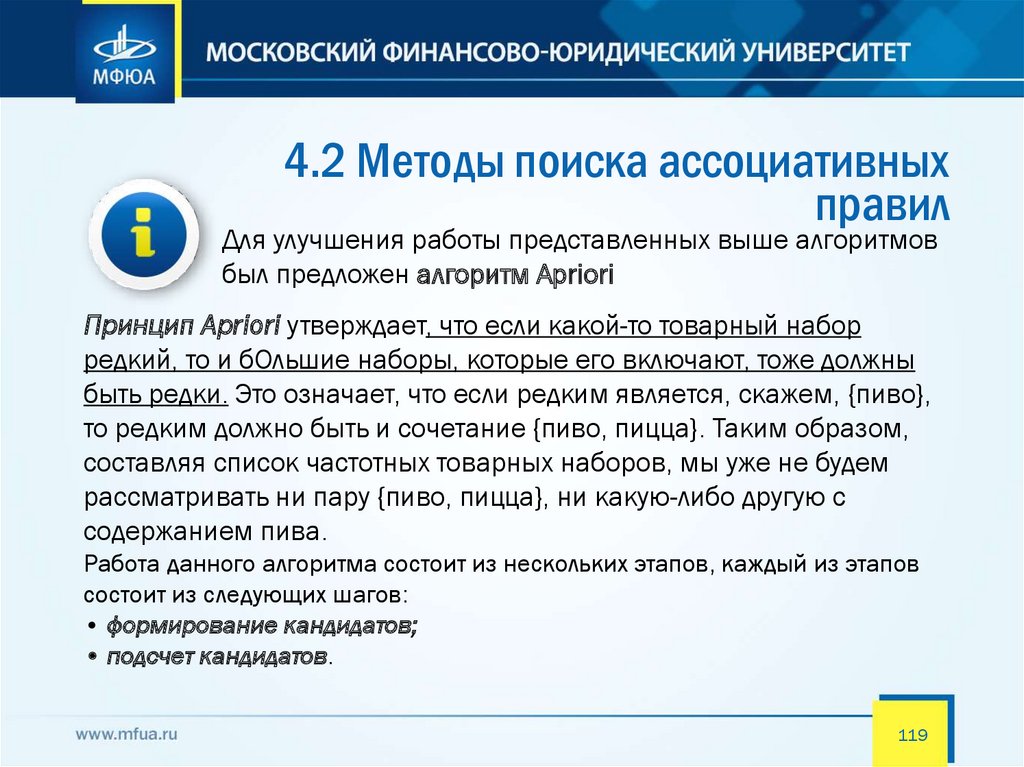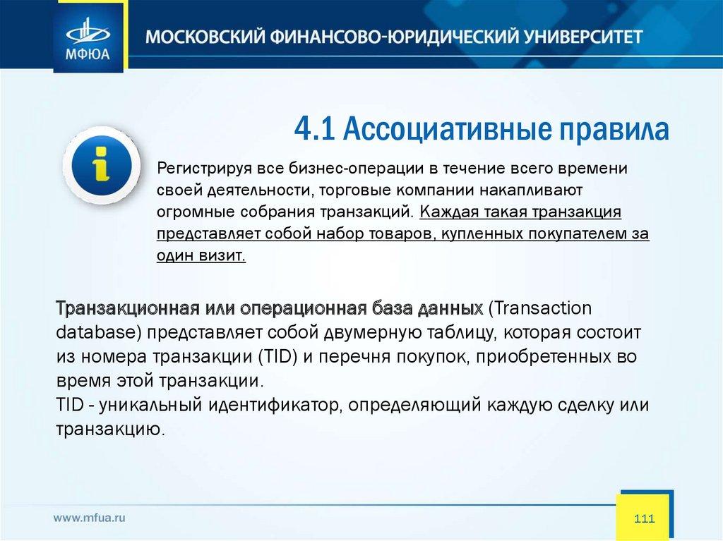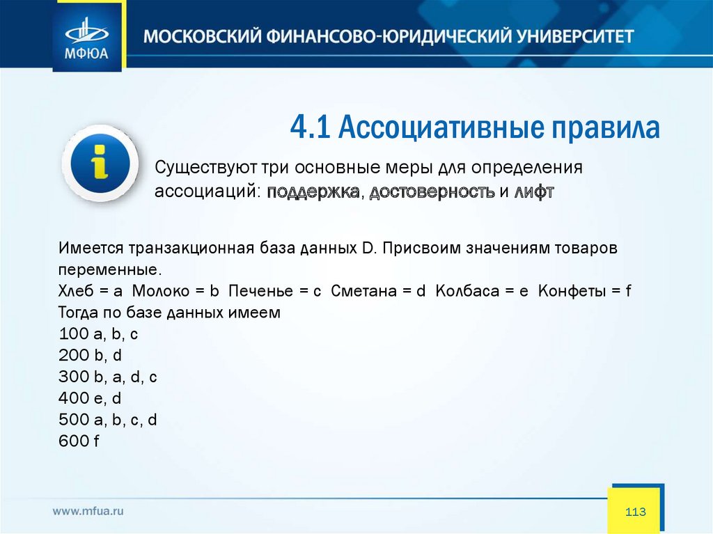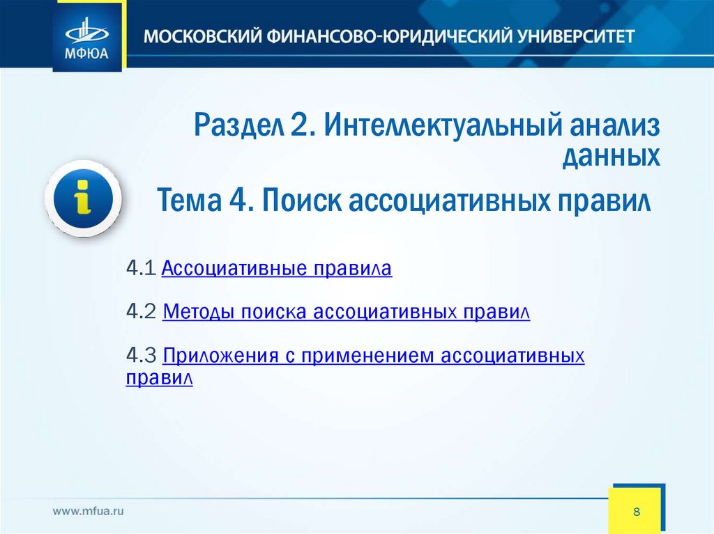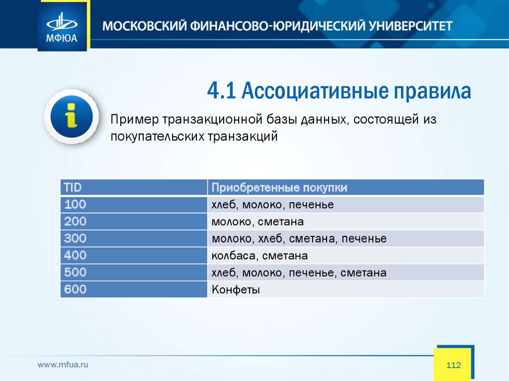 ► методы класса Data Mining: обучение ассоциативным правилам (англ.