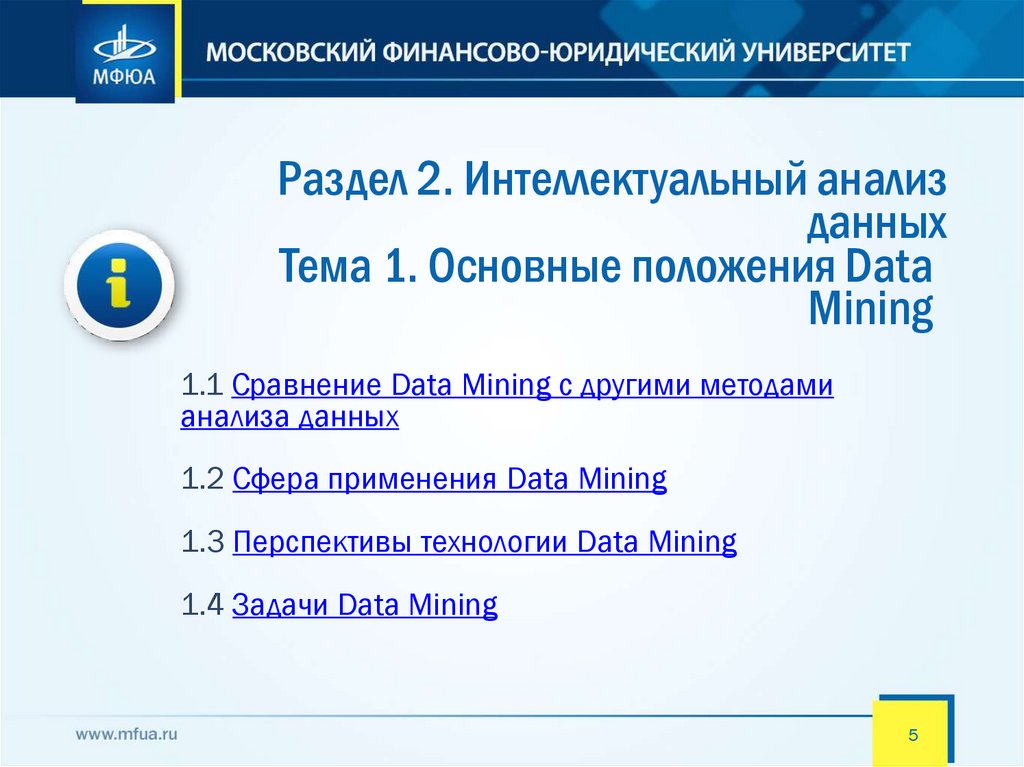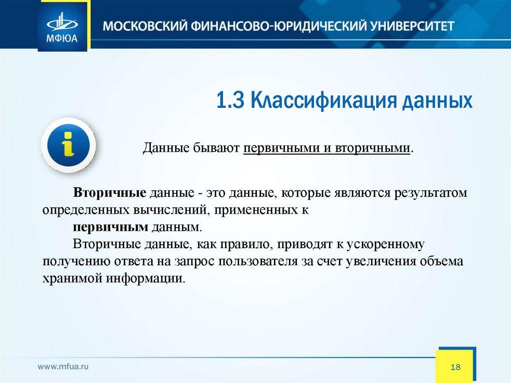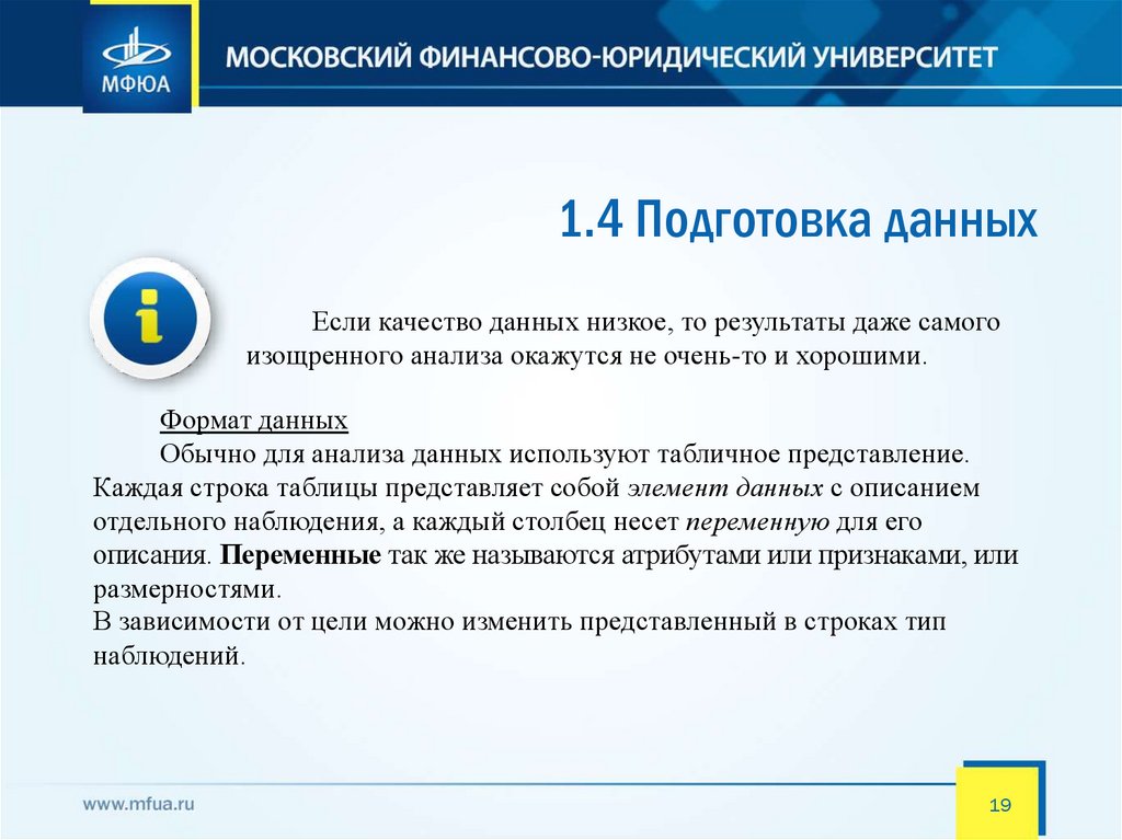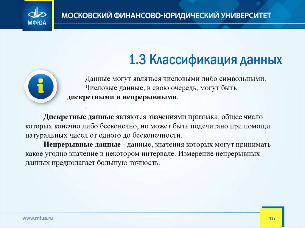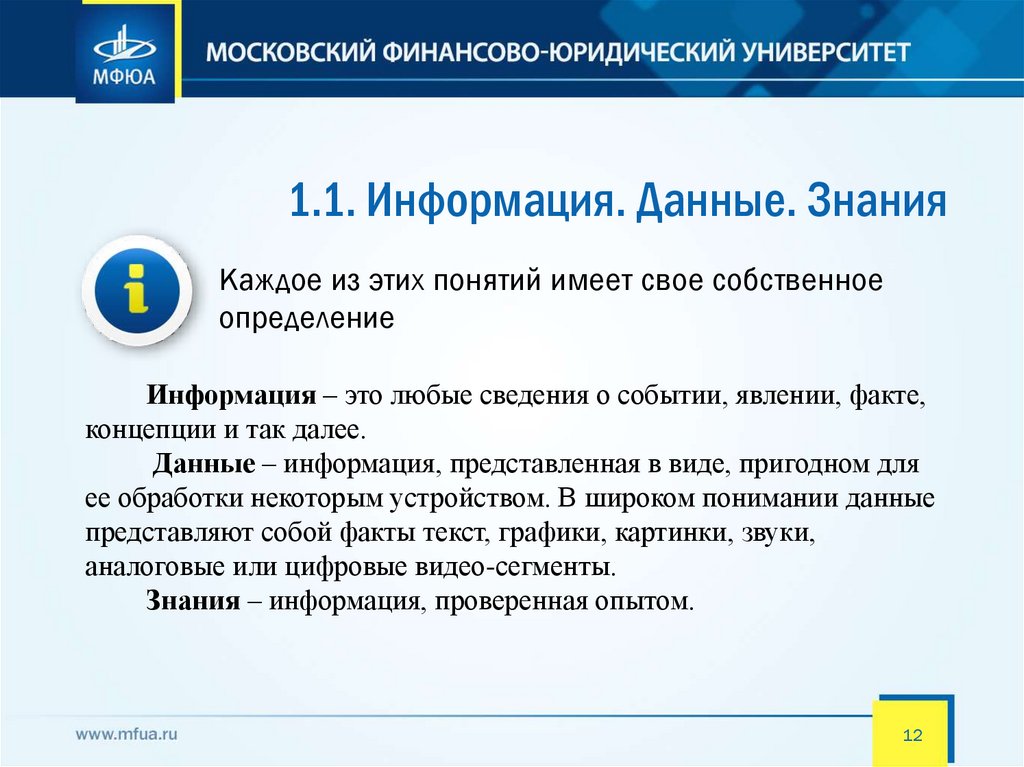 1.1. Информация. Данные. ЗнанияКаждое из этих понятий имеет свое собственное
