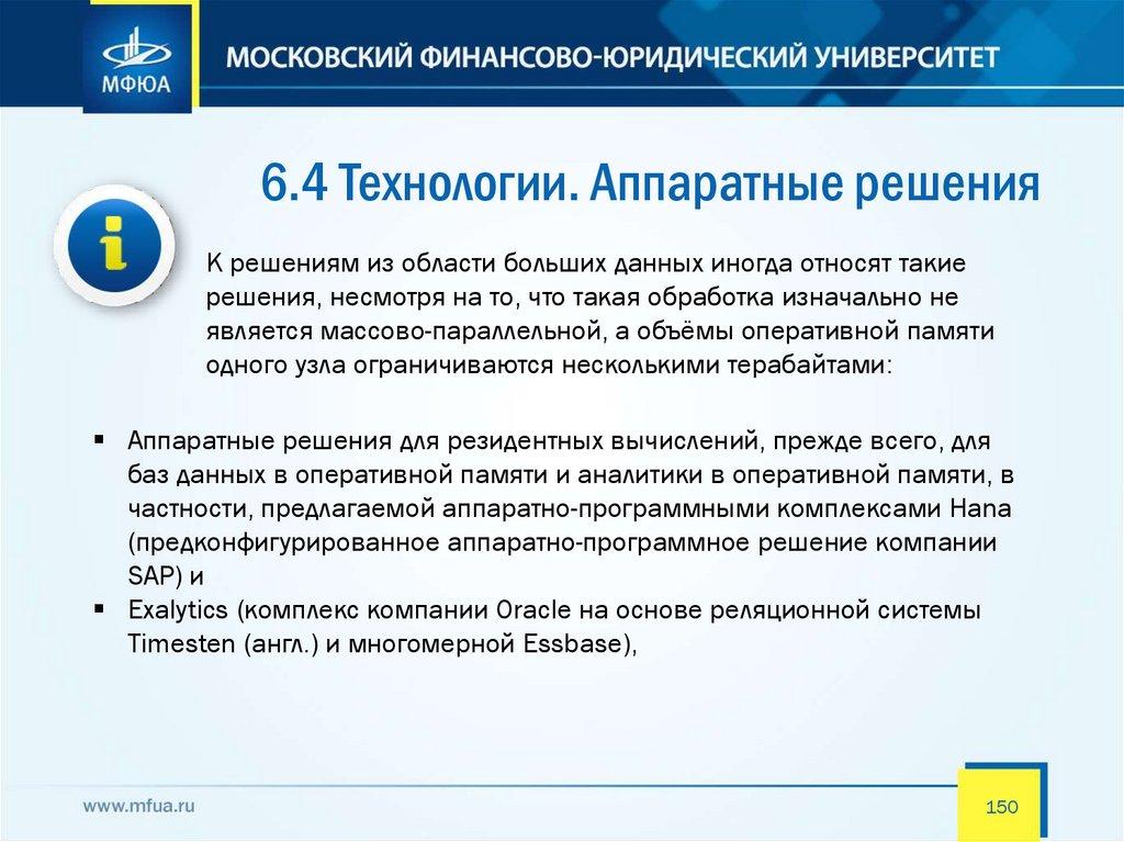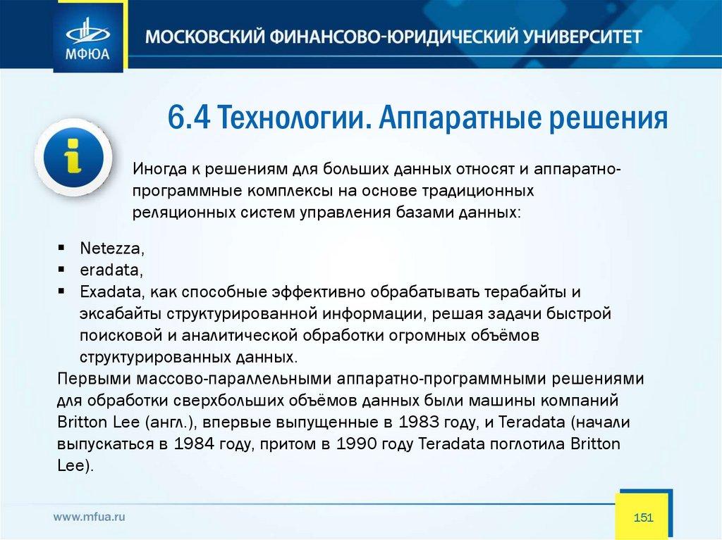 6.4 Технологии. Аппаратные решенияК решениям из области больших данных иногда относят такие