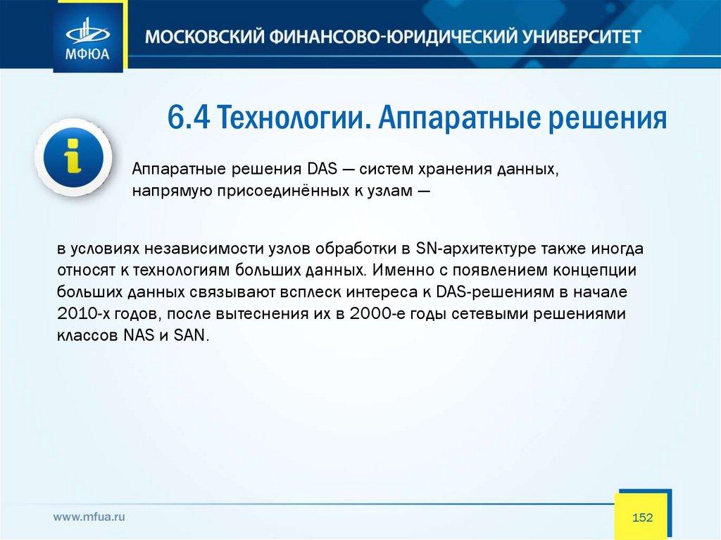 6.4 Технологии. Аппаратные решенияАппаратные решения DAS — систем хранения данных,