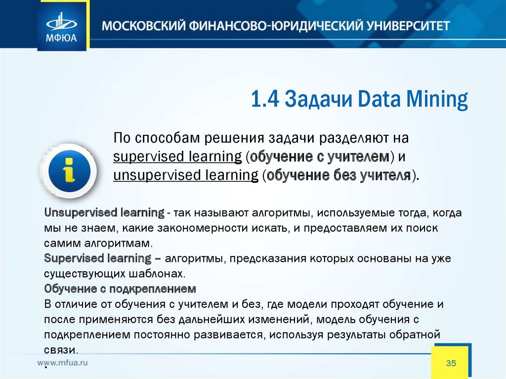 ► машинное обучение, включая обучение с учителем и без учителя, а