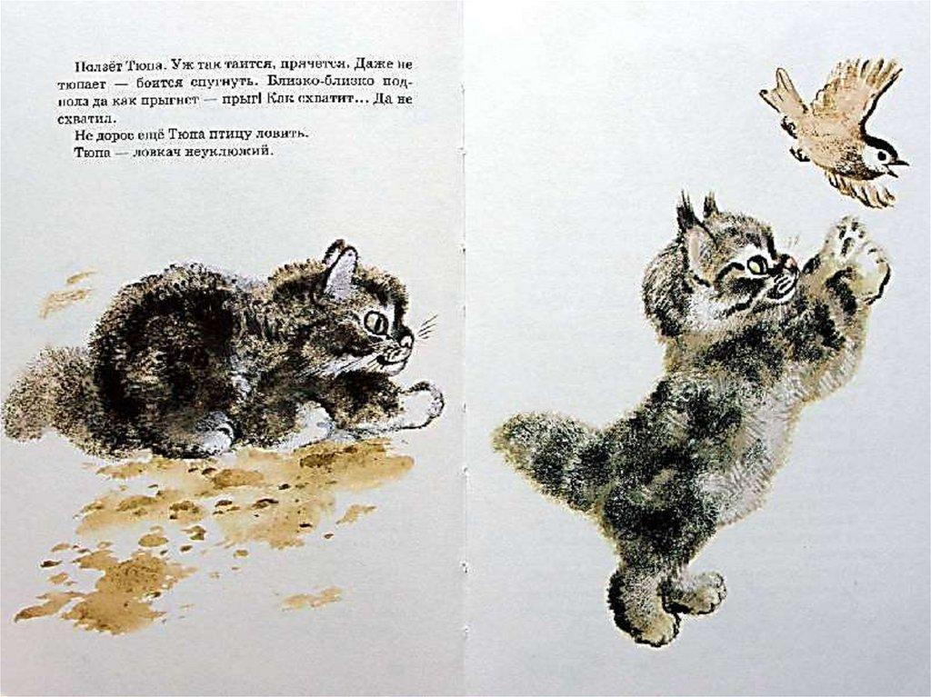 Кошка может быть ласковой иЕ. Чарушин. Не подходи! Акварель доброй. Но если её котятам грозит