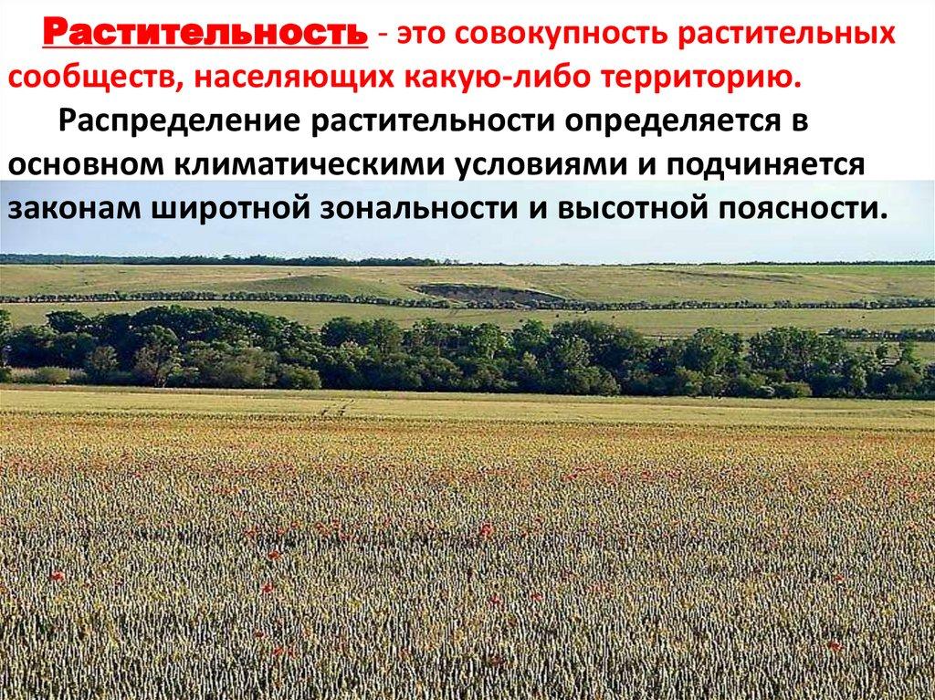 Растительность - это совокупность растительныхсообществ, населяющих какую-либо территорию.