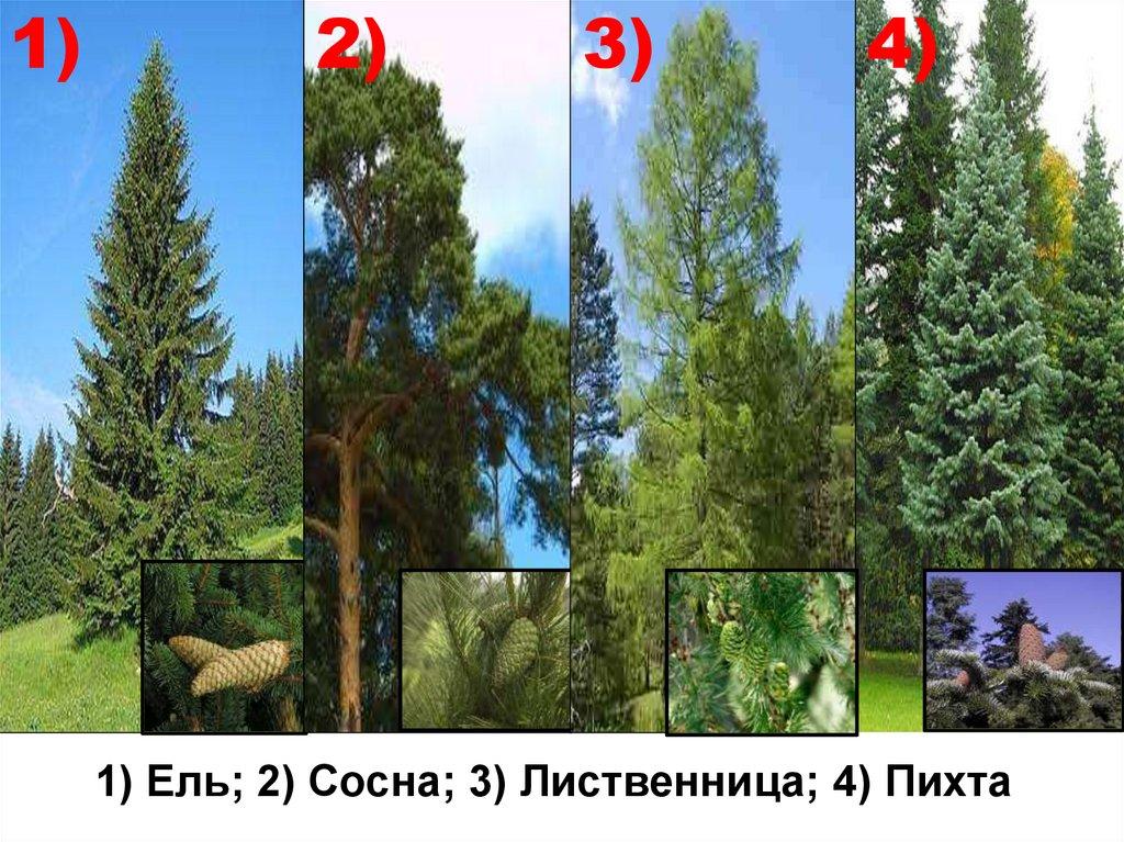 1) Ель; 2) Сосна; 3) Лиственница; 4) Пихта
