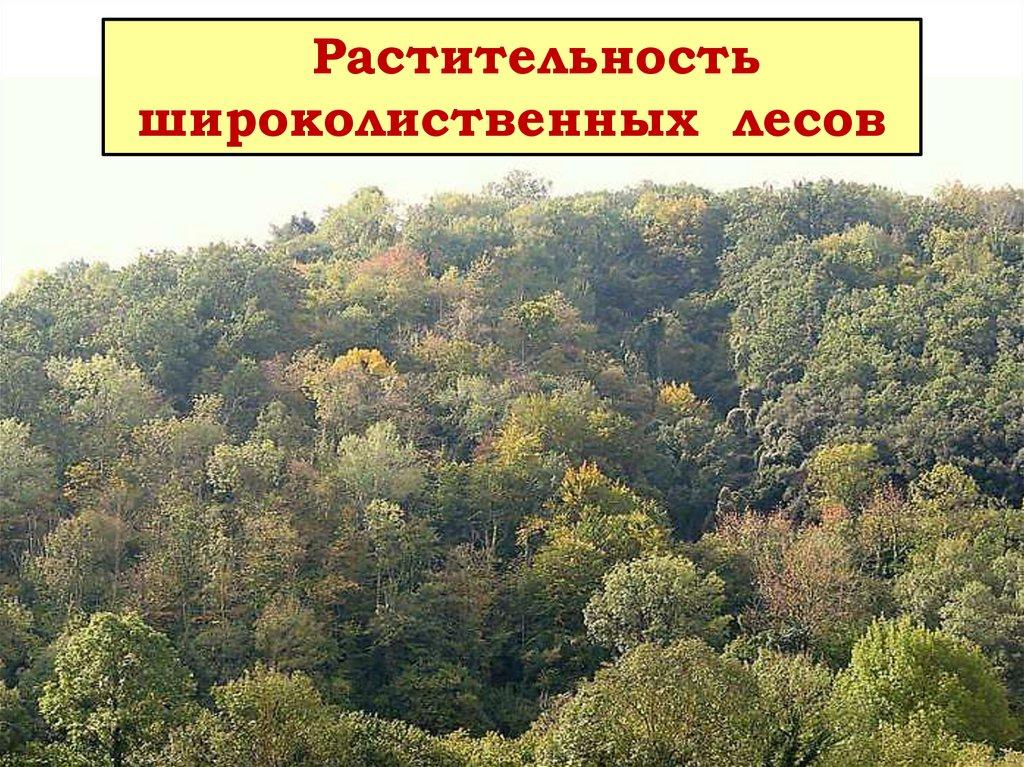 Растительный мир широколиственных лесов многообразен.Ели, сосны, дуб, липа, клён, берёзы и осины. Под деревьями